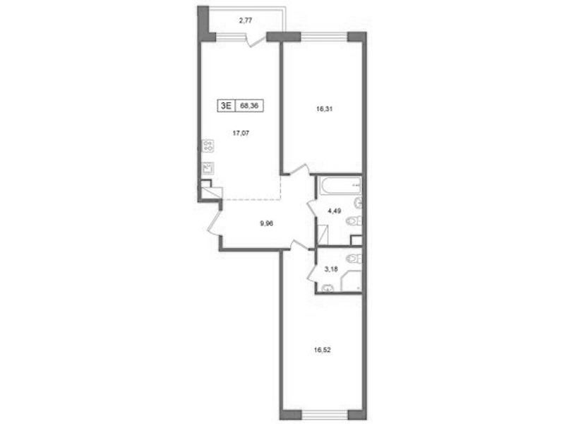 Двухкомнатная квартира на 6-ом этаже 68,36 кв.м