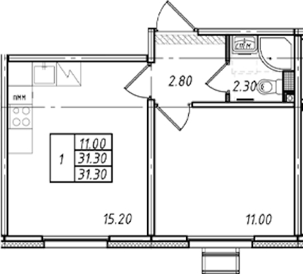 Однокомнатная квартира на 7-ом этаже 31,3 кв.м