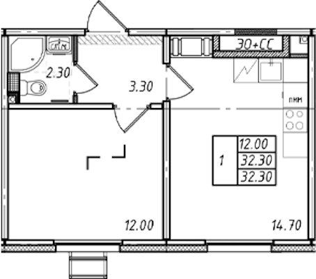 Однокомнатная квартира на 4-ом этаже 32,3 кв.м