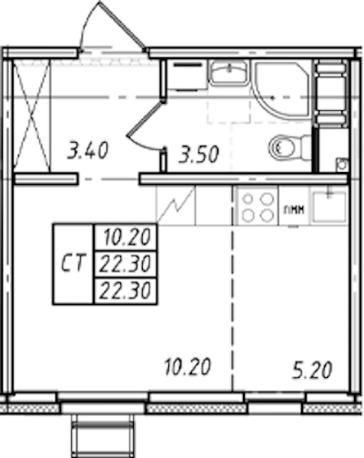 - Площадь22,3 м2