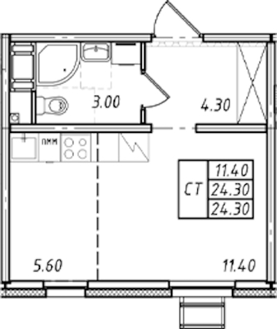 - Площадь24,3 м2