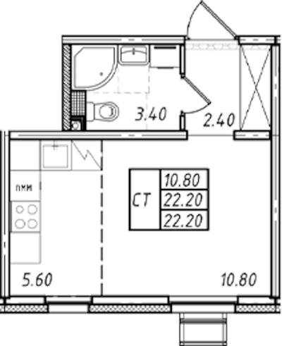 Квартира-студия на 11-ом этаже 22,2 кв.м