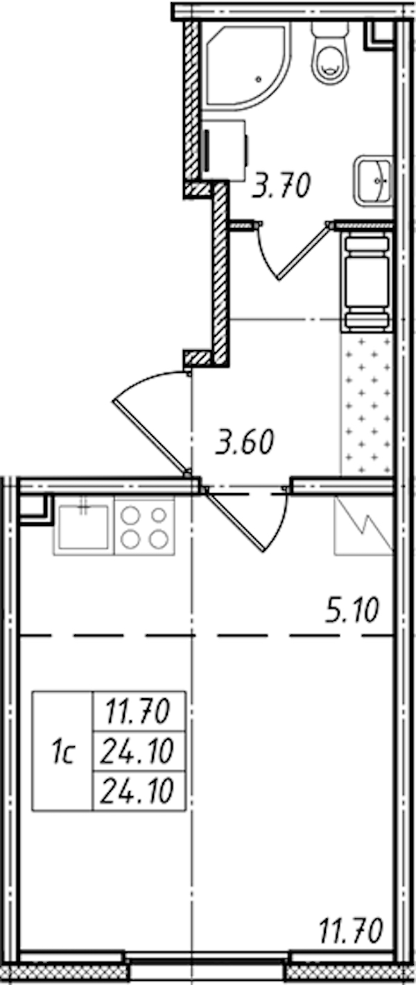 • Площадь24,1 м2