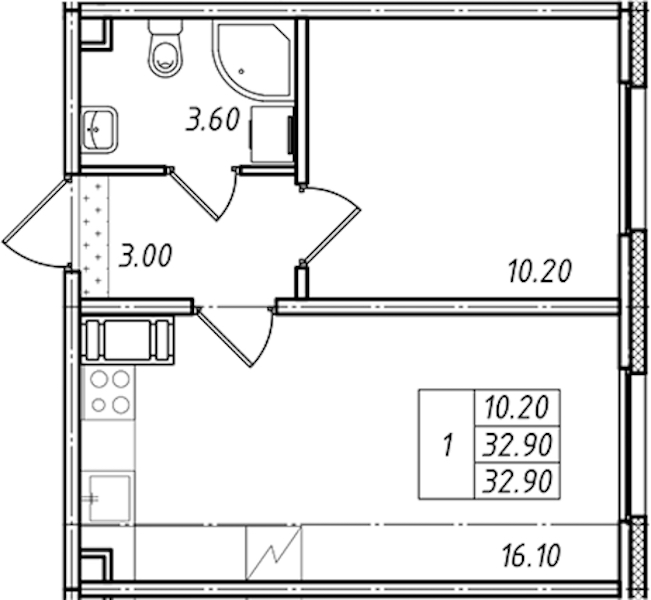 - Площадь32,9 м2