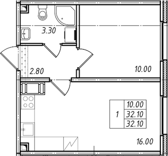 • Площадь32,1 м2