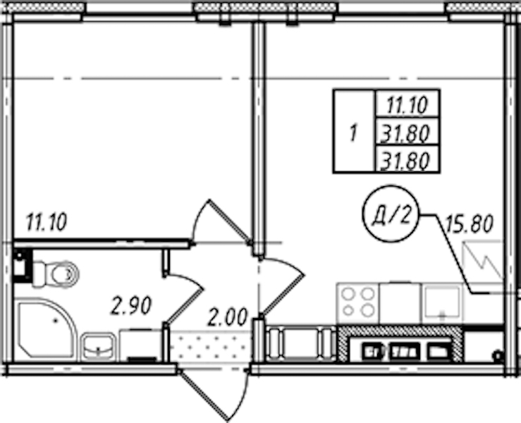 Однокомнатная квартира на 12-ом этаже 31,8 кв.м