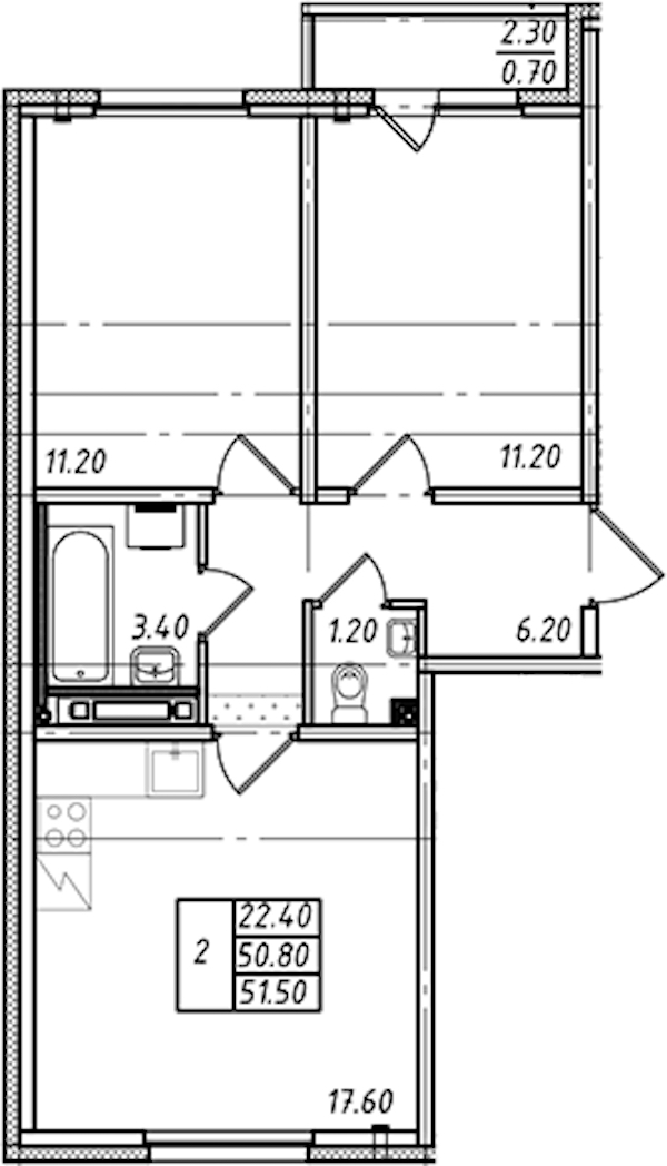 - Площадь51,5 м2