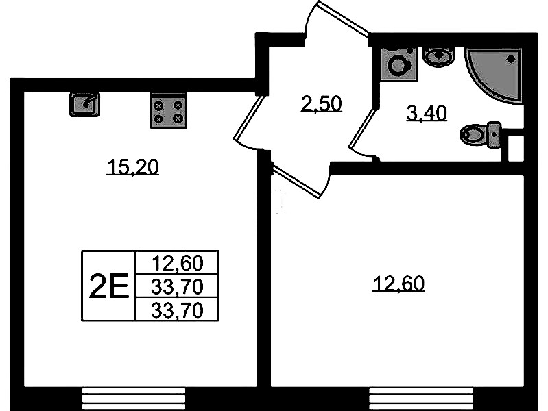 - Площадь33,7 м2
