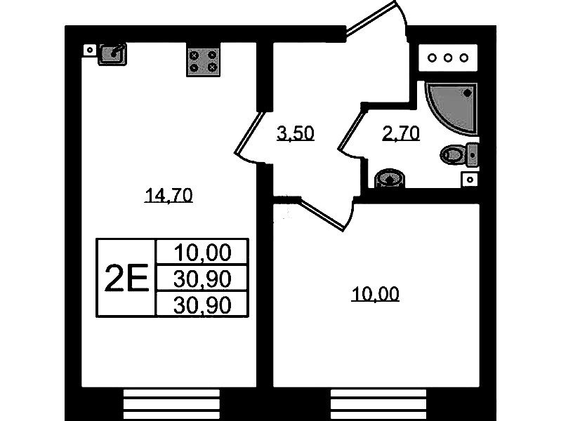 - Площадь30,9 м2