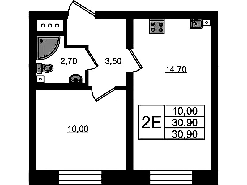 - Площадь30,9 м2