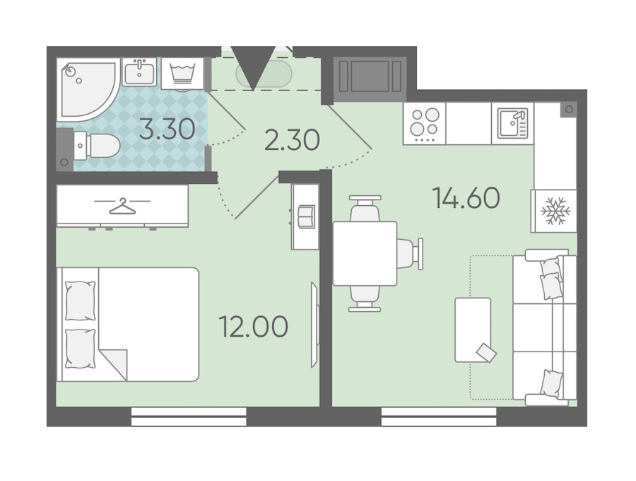 • Площадь кухни14,6 м2