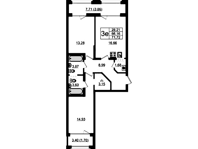 • Площадь71,72 м2