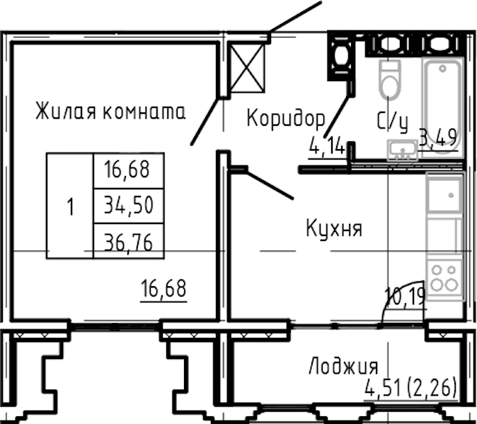 - Площадь36,76 м2