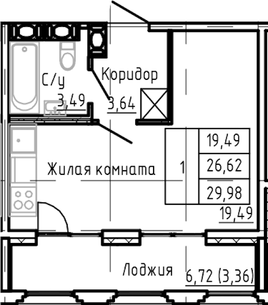 Квартира-студия на 16-ом этаже 29,98 кв.м