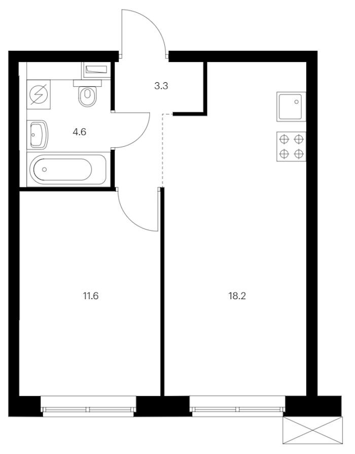 • Площадь кухни18,2 м2
