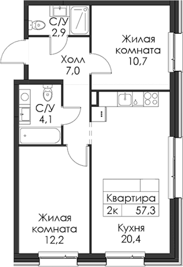 • Площадь57,3 м2