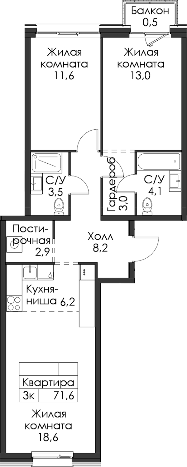 • Площадь71,6 м2