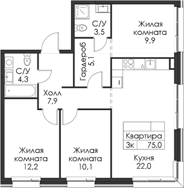 • Площадь75 м2