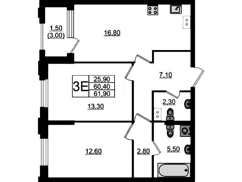 • Площадь61,9 м2