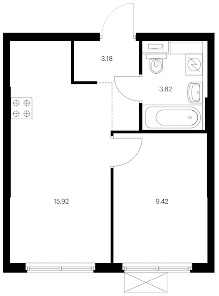 - Площадь кухни15,92 м2
