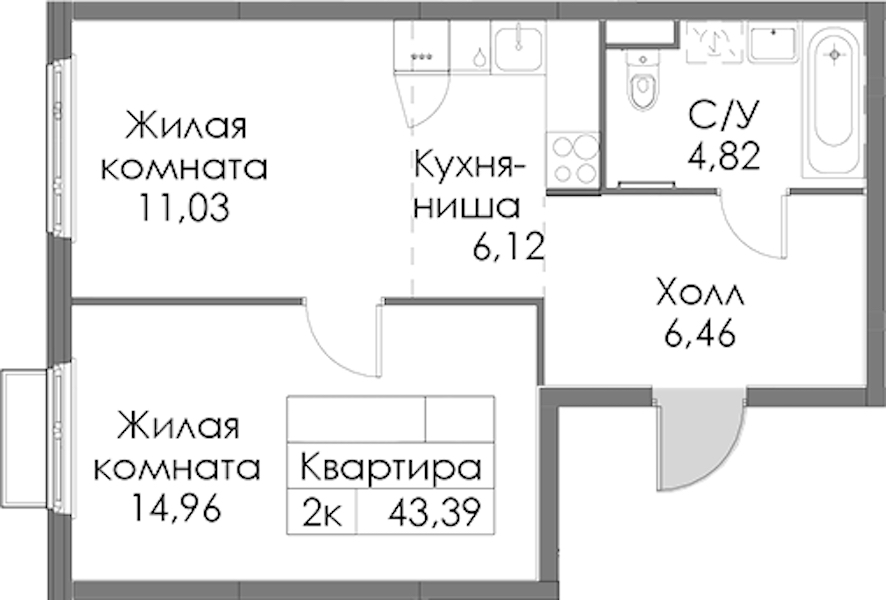 • Площадь43,39 м2
