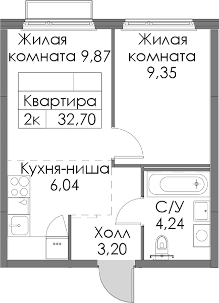 Однокомнатная квартира на 8-ом этаже 32,7 кв.м