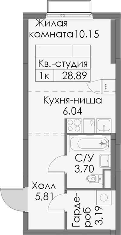Квартира-студия на 4-ом этаже 28,89 кв.м