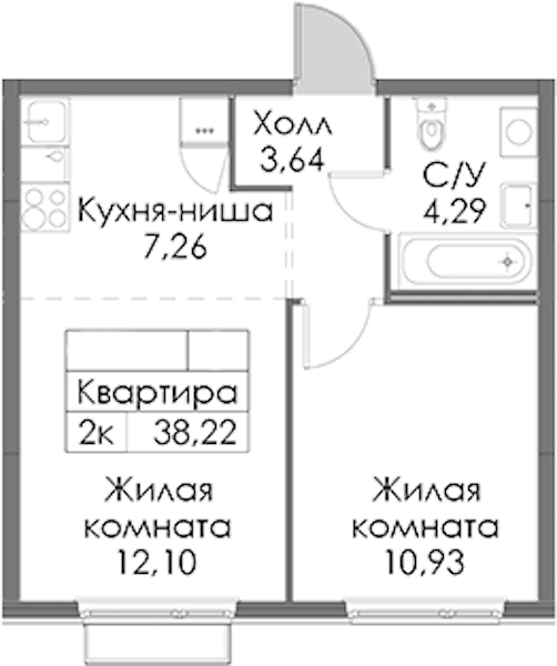 - Площадь38,22 м2