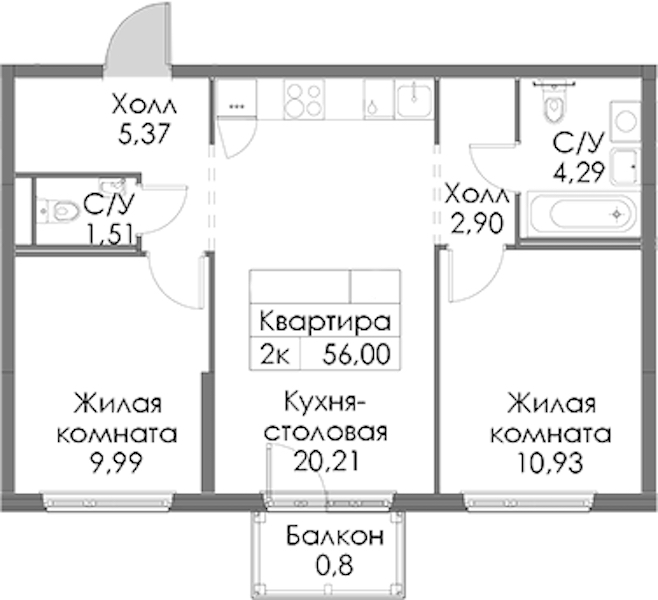 • Площадь56 м2