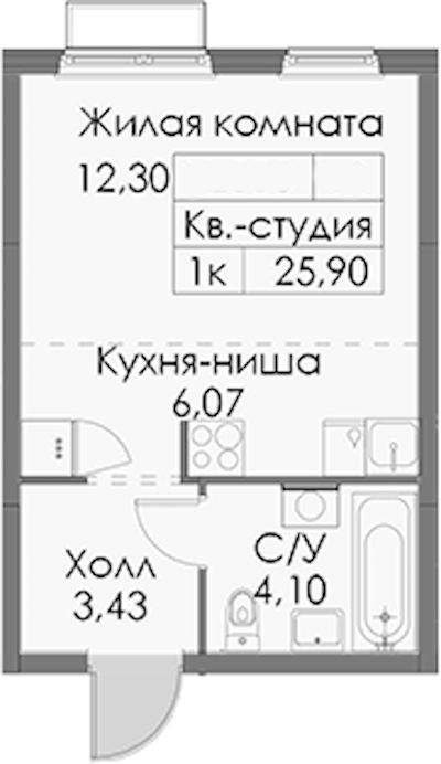 Квартира-студия на 7-ом этаже 25,9 кв.м