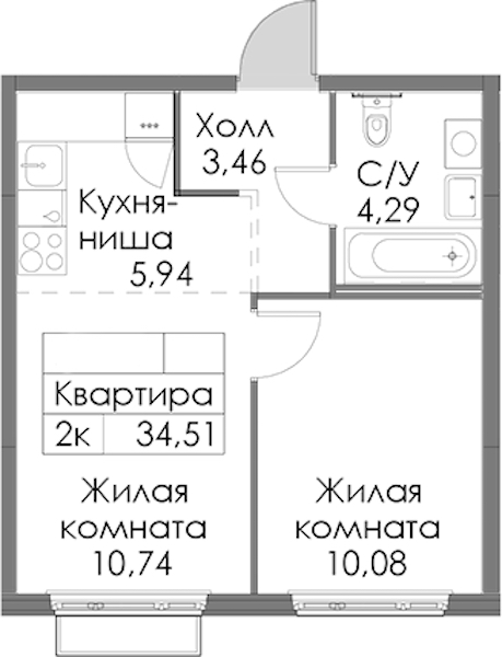 - Площадь34,51 м2