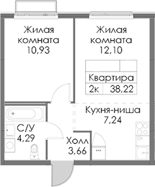 - Площадь38,22 м2
