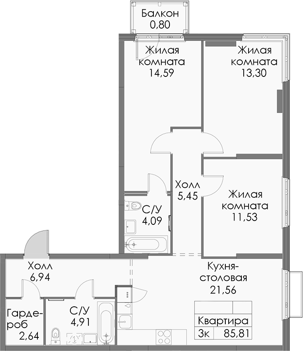 - Площадь85,81 м2