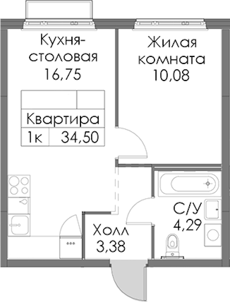- Площадь34,5 м2