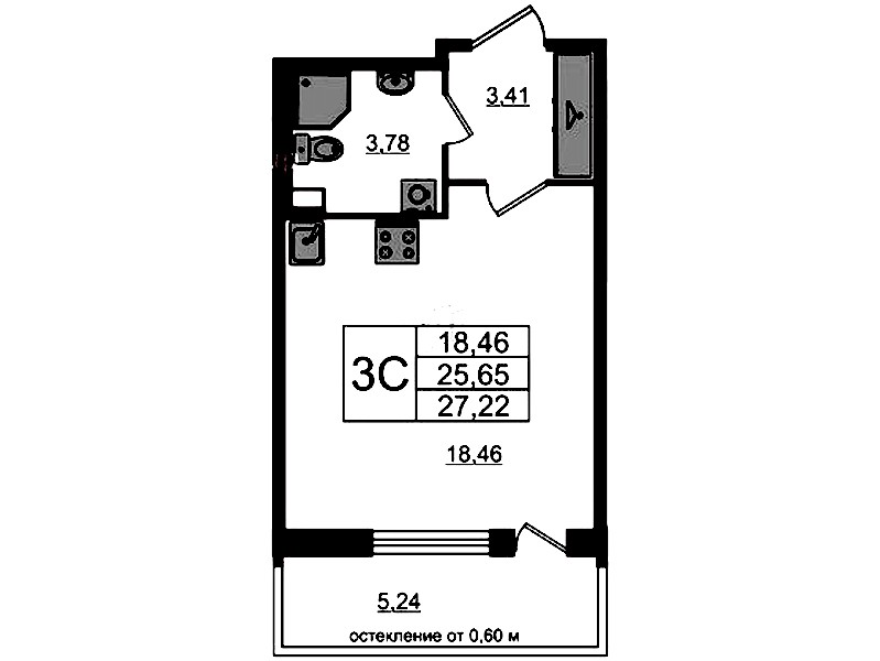 Квартира-студия на 2-ом этаже 25,65 кв.м