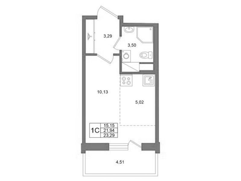 Квартира-студия на 3-ем этаже 21,94 кв.м