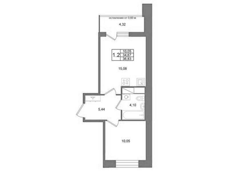 Однокомнатная квартира на 5-ом этаже 34,67 кв.м