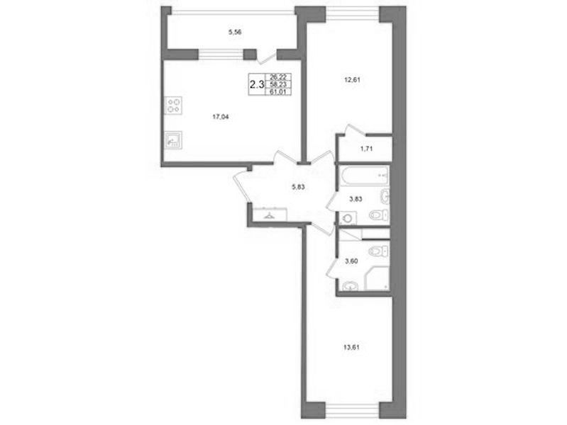 - Площадь58,23 м2