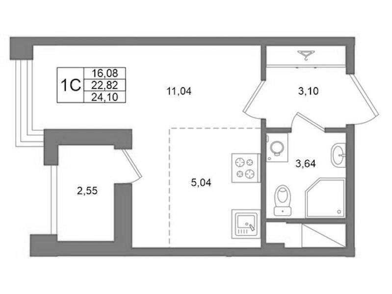 - Площадь22,82 м2
