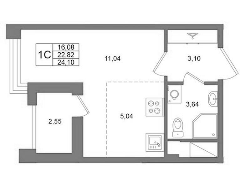 Квартира-студия на 6-ом этаже 22,82 кв.м