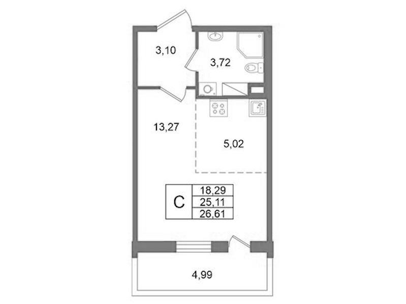 - Площадь25,11 м2