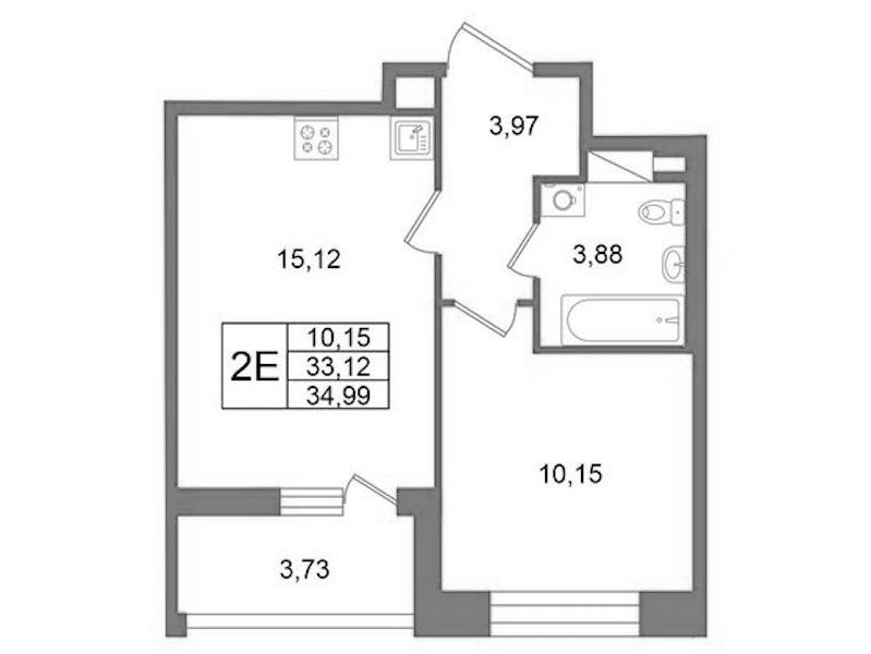 Однокомнатная квартира на 6-ом этаже 33,12 кв.м