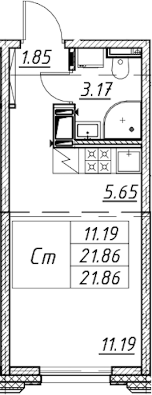 Квартира-студия на 3-ем этаже 21,86 кв.м