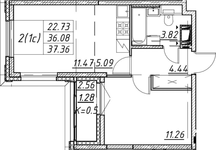 • Площадь37,36 м2