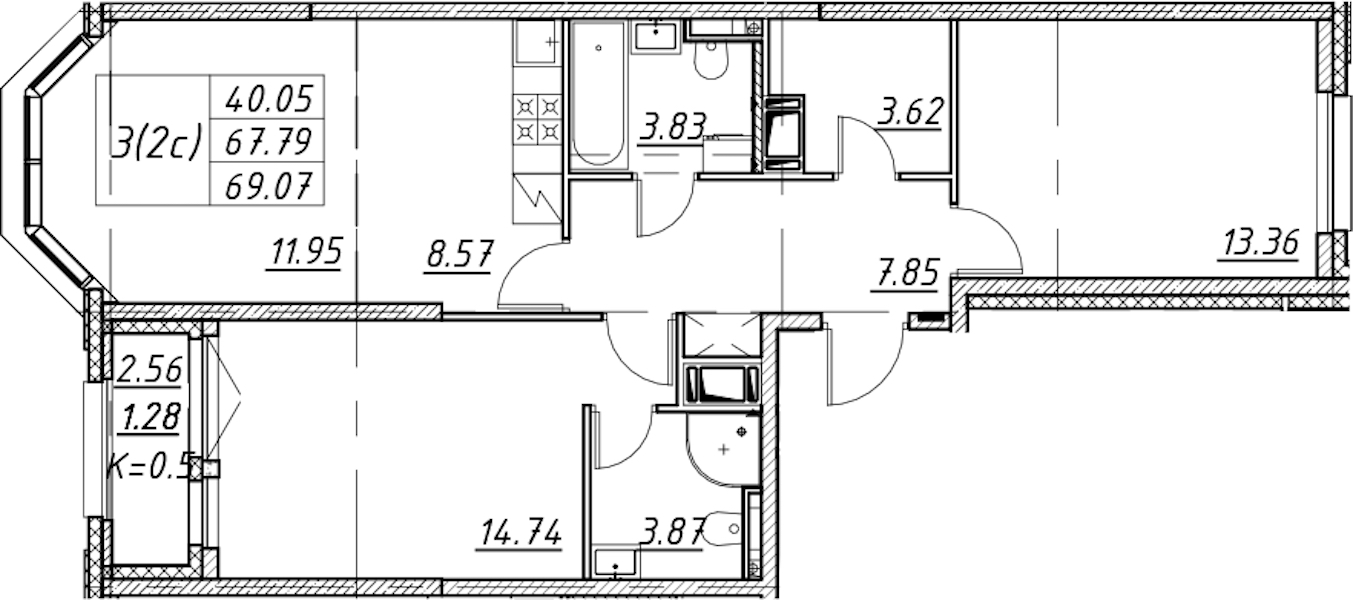• Площадь69,07 м2