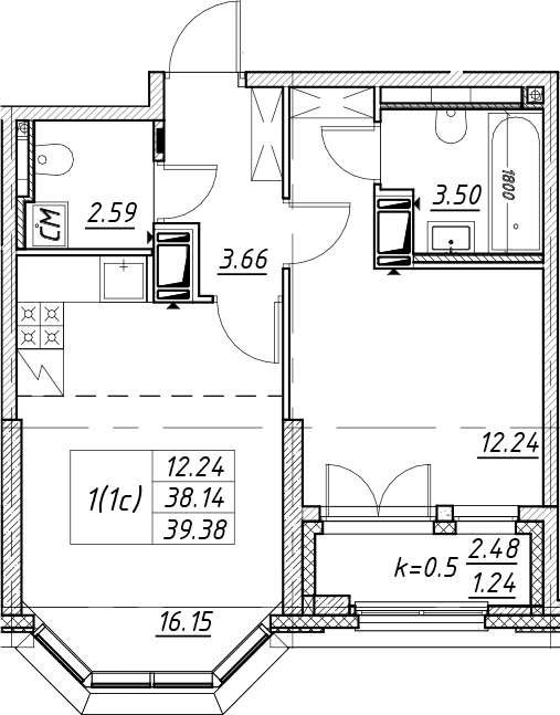 • Площадь39,38 м2