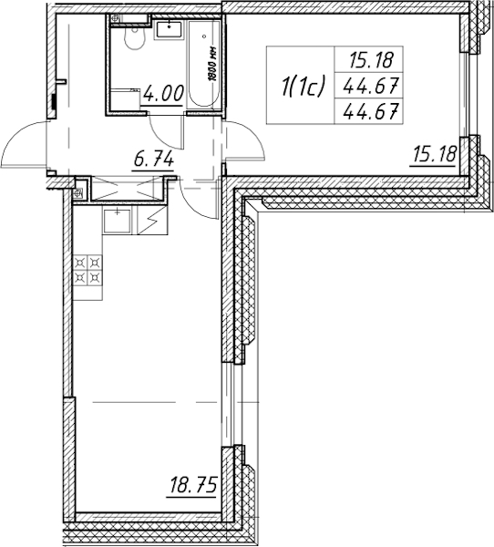 • Площадь44,67 м2