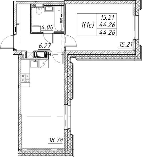 Однокомнатная квартира на 5-ом этаже 44,26 кв.м
