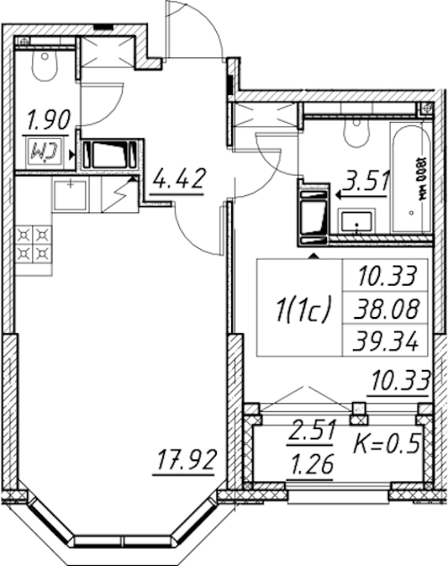 • Площадь39,34 м2