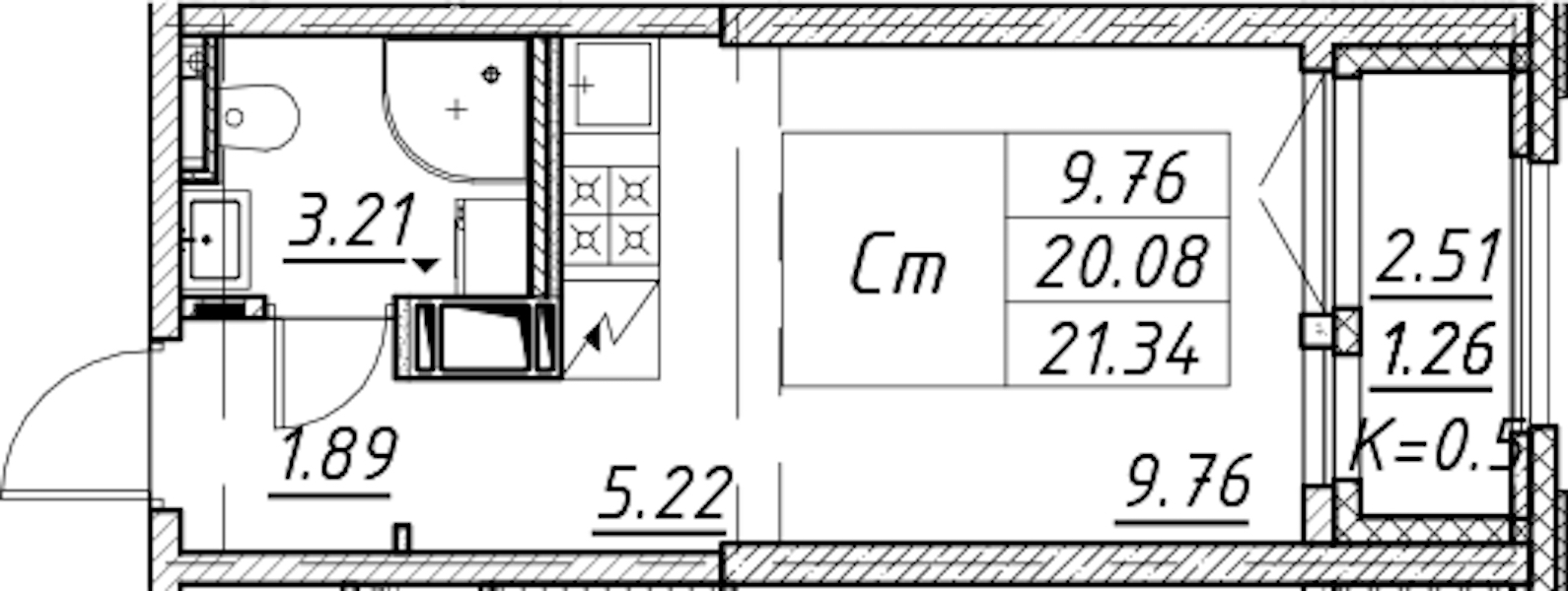 Квартира-студия на 15-ом этаже 21,34 кв.м